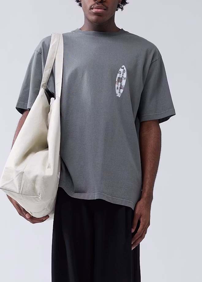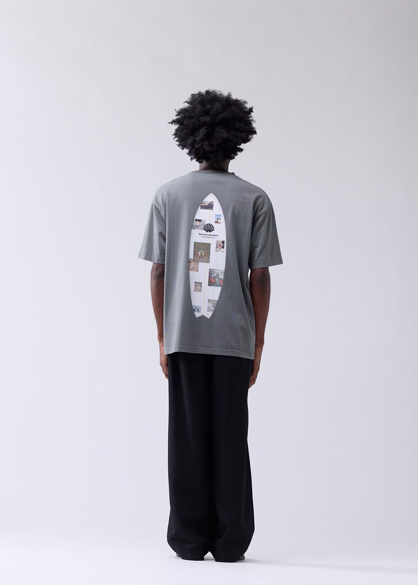 Crew neck t-shirt, cut to a regular unisex fit. Detailed with a seasonal branded 'surf zine' artwork digital print on the front and back. This tee is made of a 240 GSM fabric dyed and garment washed cotton.