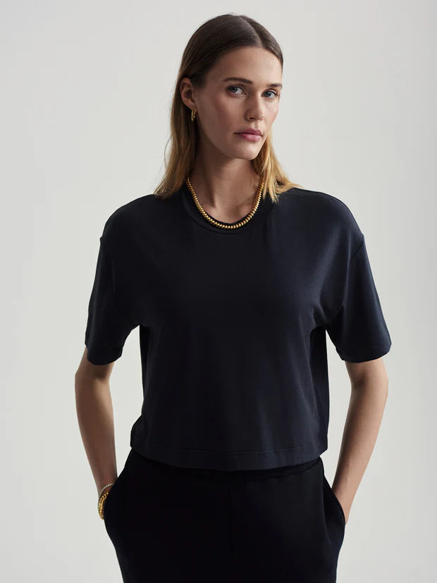 Introducing the Venice Easy Tee: a chic, cropped take on the Leighton. Made from soft Modal Jersey, this tee offers a relaxed fit with a timeless crew neck design. Effortlessly versatile, it sits perfectly at the waistband for an easy tuck-in style.