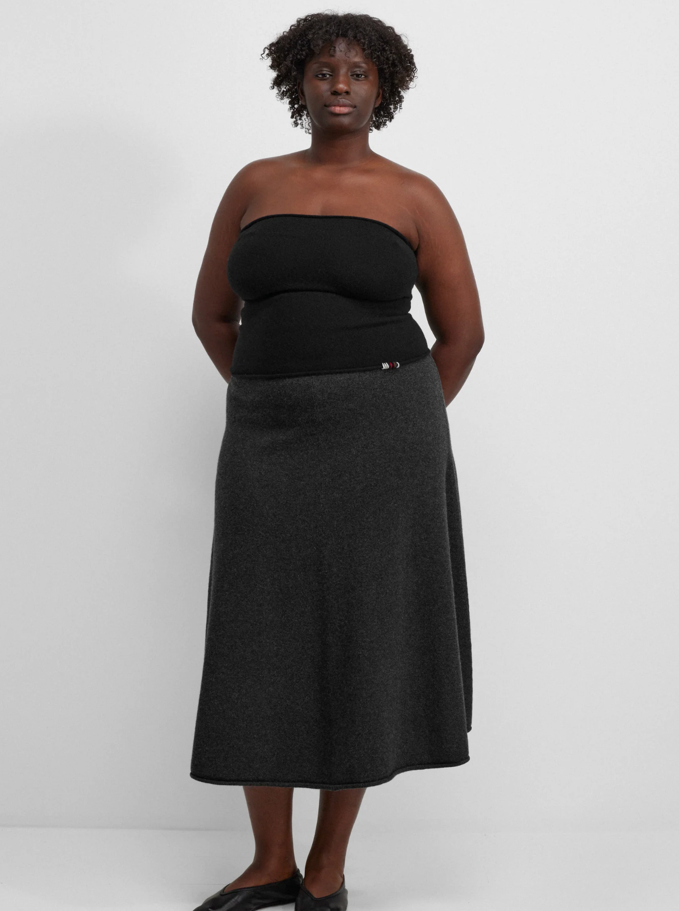 Fitted seamless cashmere tube belt with rolling edges. Can be worn as an off-shoulder bandeau top, belt, skirt or layering piece.