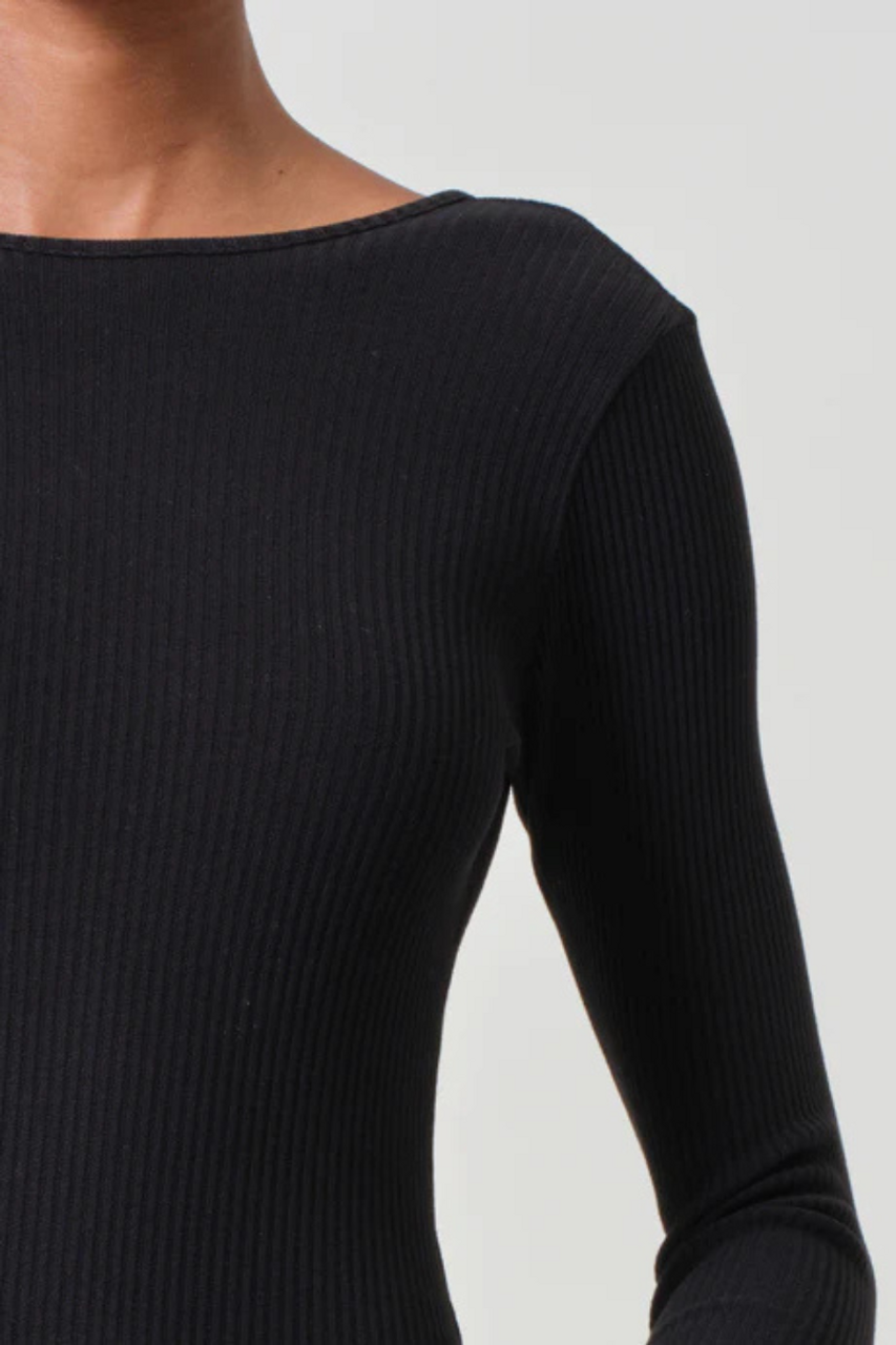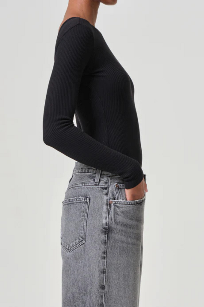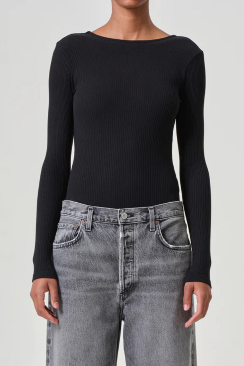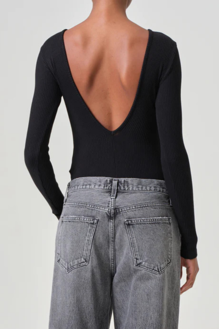 The Top Bridget is a black ribbed bodysuit, which features a deep v-back cut, adding a touch of class to any outfit. Whether you're dressing up for a night out or keeping it casual, the Top Bridget V Back Black is the stylish and versatile choice.