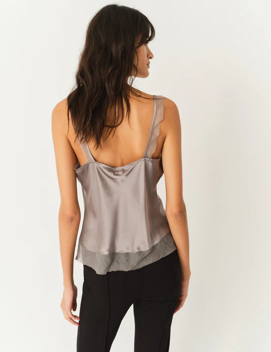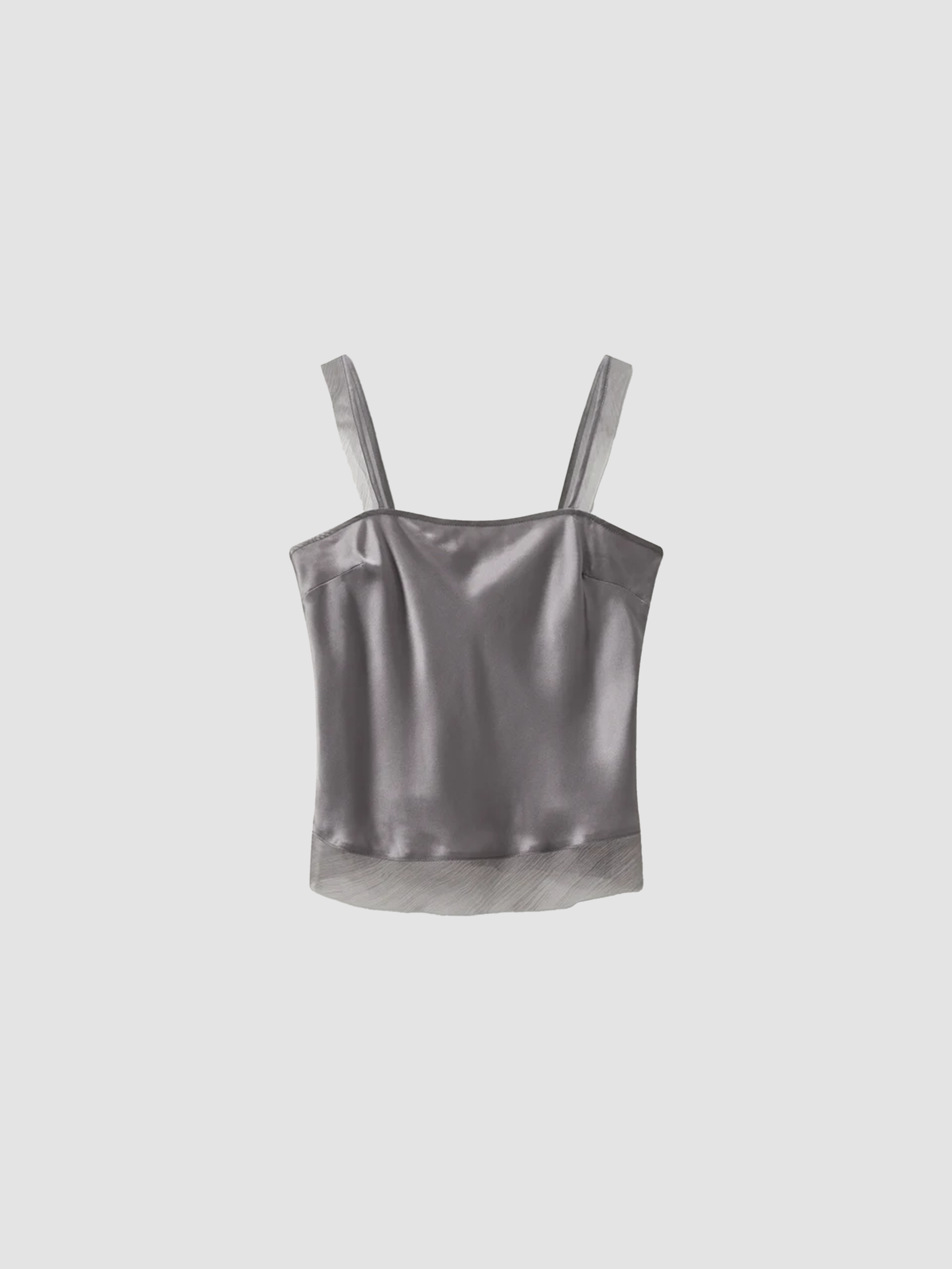 CATANIA TOP N IS CRAFTED FROM 100% SILK AND FEATURING DELICATE SHEER DETAILING AT THE BOTTOM AND SHOULDER STRAPS.