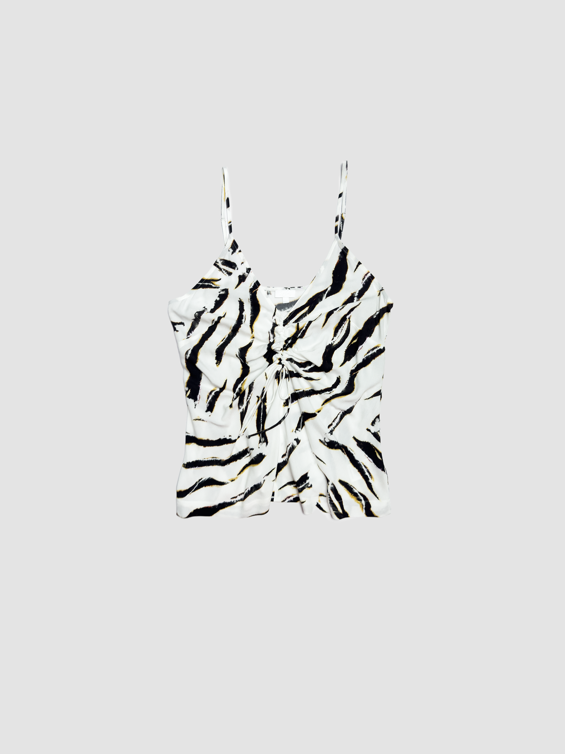 Poolside cocktails. With its zebra pattern in black and white tones and lightweight viscose material, Tiko is the perfect little summer top. With the tie detail in front, the fit can be adjusted, and combined with Pants Palooza, you have an eye-catching and heat-proof two-piece outfit.
