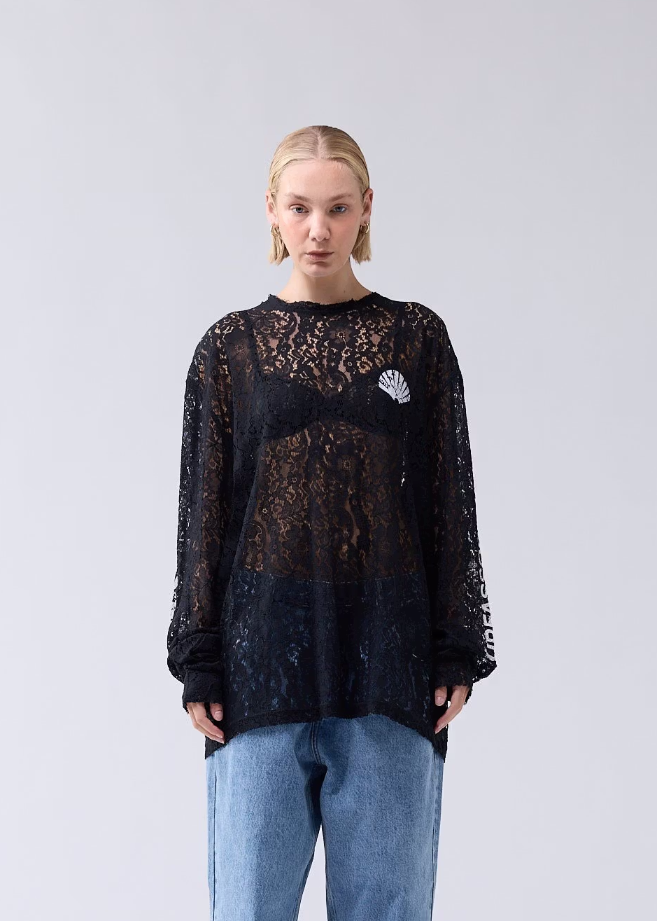 Crew neck lace longsleeve, cut to a regular unisex fit. Detailed with the New Amsterdam logo and name digital print on front, back and sleeves.