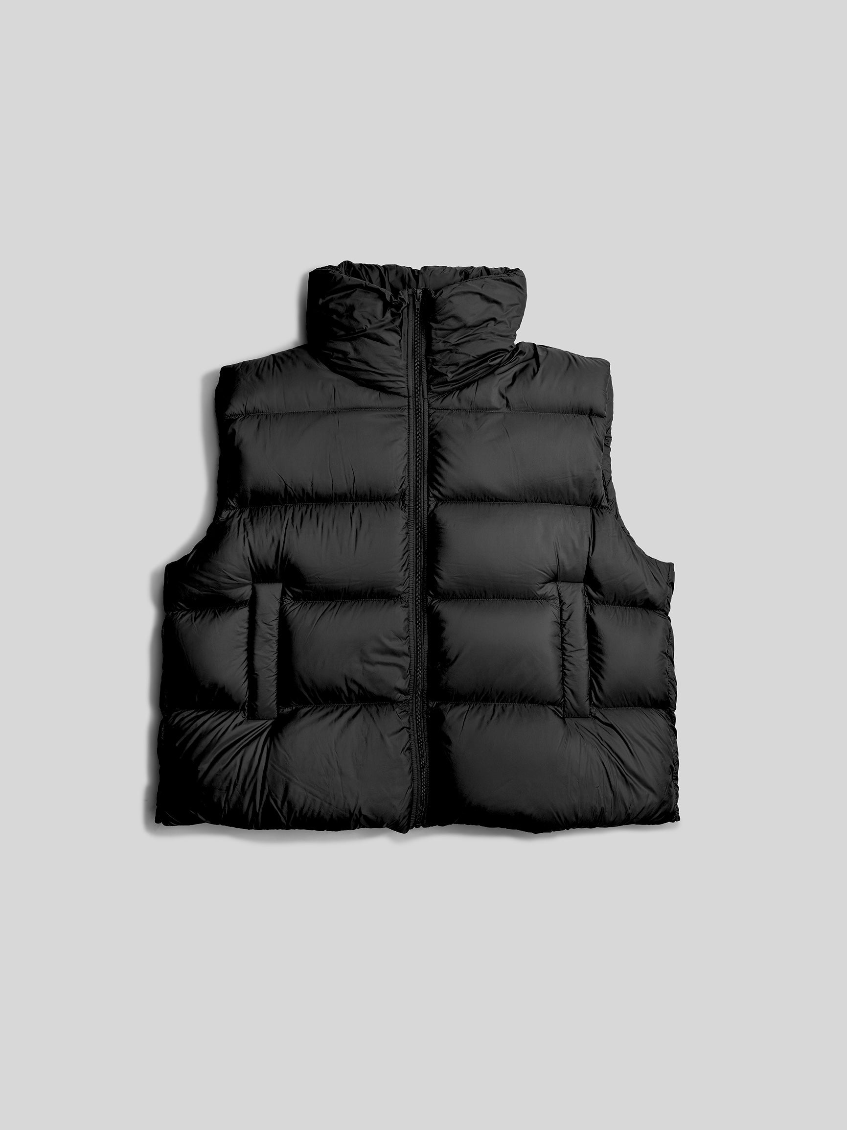 Voluminous vest with generous cross-stitching. Drawstrings on the inside provide wind protection, while the down provides warmth on cold days. This model is perfect for transitional wear, solo or over a jacket.